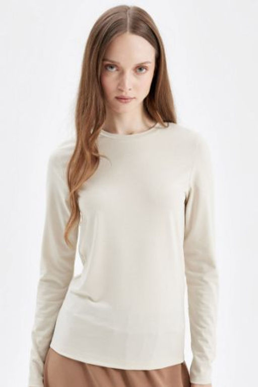 Bisiklet Yaka Basic Duz Uzun Kollu Tisort