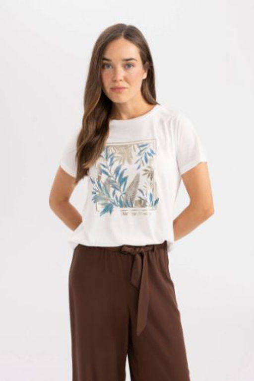 Bisiklet Yaka Bask?l? K?sa Kollu Tisort
