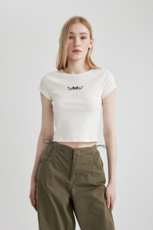 Coool Fitted Islemeli Fitilli Kaskorse K?sa Kollu Tisort