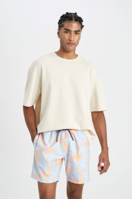 Regular Fit Desenli K?sa Boy Deniz Sortu