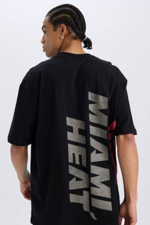 DeFactoFit NBA Miami Heat Oversize Genis Kal?p Bisiklet Yaka K?sa Kollu Tisort