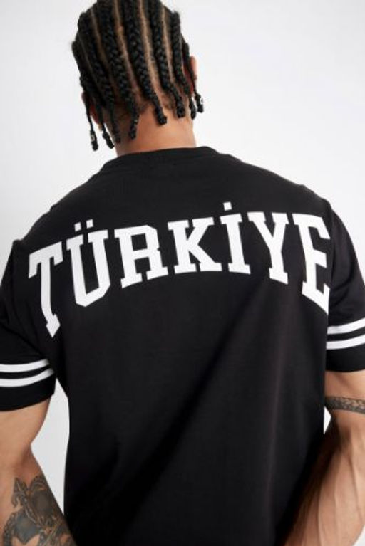 DeFactoFit Standart Fit Hakim Yaka Turkiye Bask?l? Sporcu K?sa Kollu Tisort