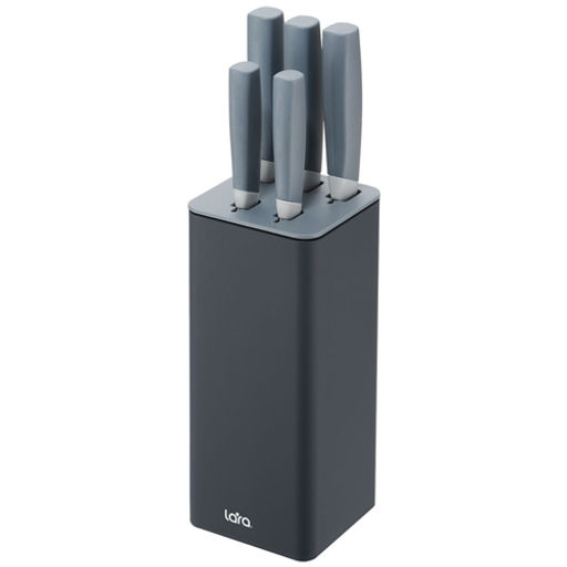 LR05-71 Набор ножей 6 предметов: Подставка (квадрат) + 5 ножей (Soft touch) /LARA/