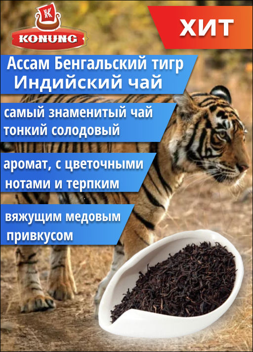 Чай Конунг чёрный Индийский чай (Ассам Бенгальский тигр) TGFOP, 500 гр