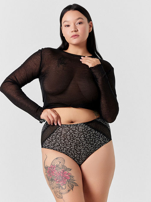 Цена за 2 штуки! Трусы женские макси черные с листиками и кружевными деталями листики на черном 412554