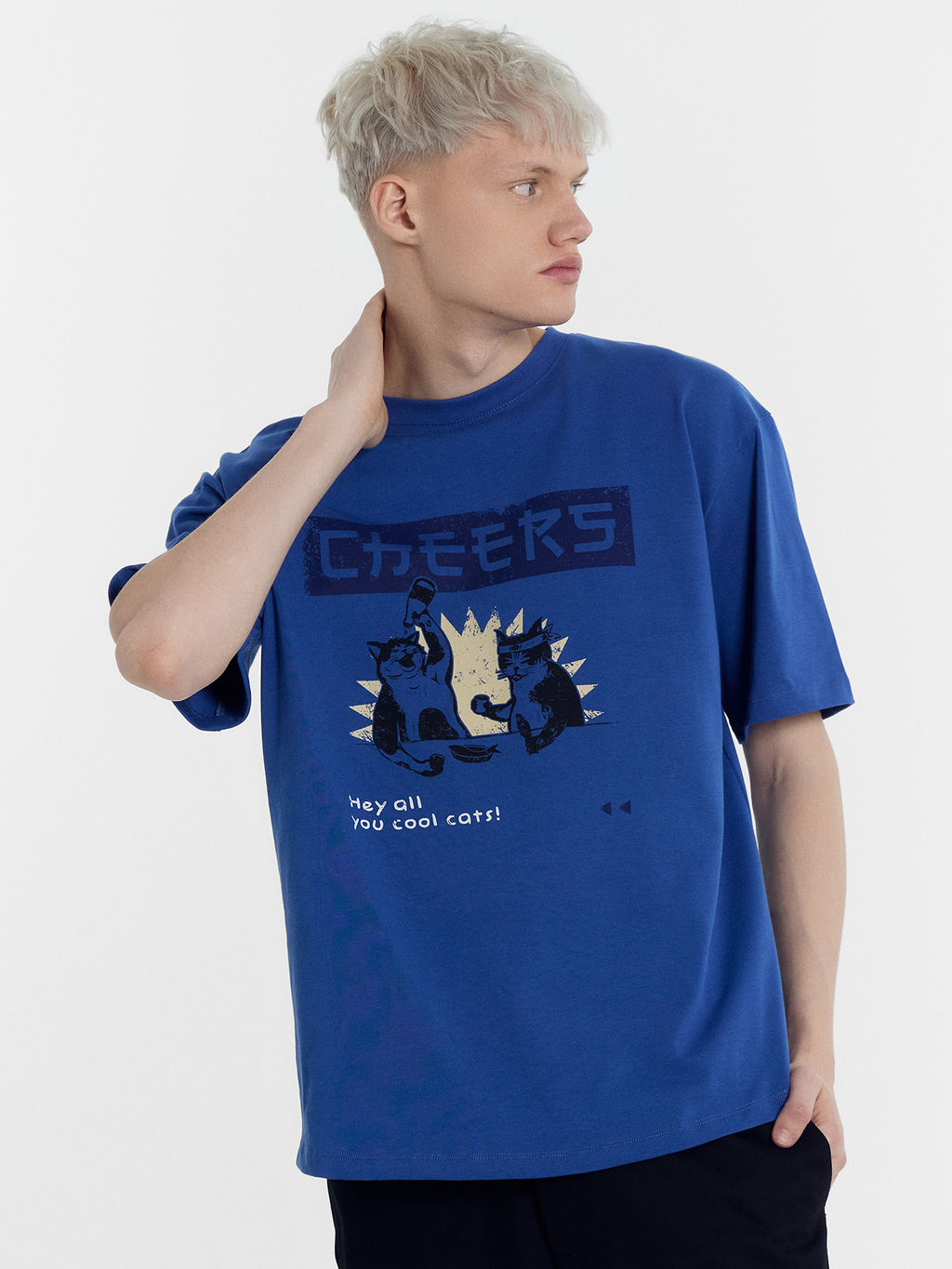 Футболка мужская синяя с печатью синий +печать 111882