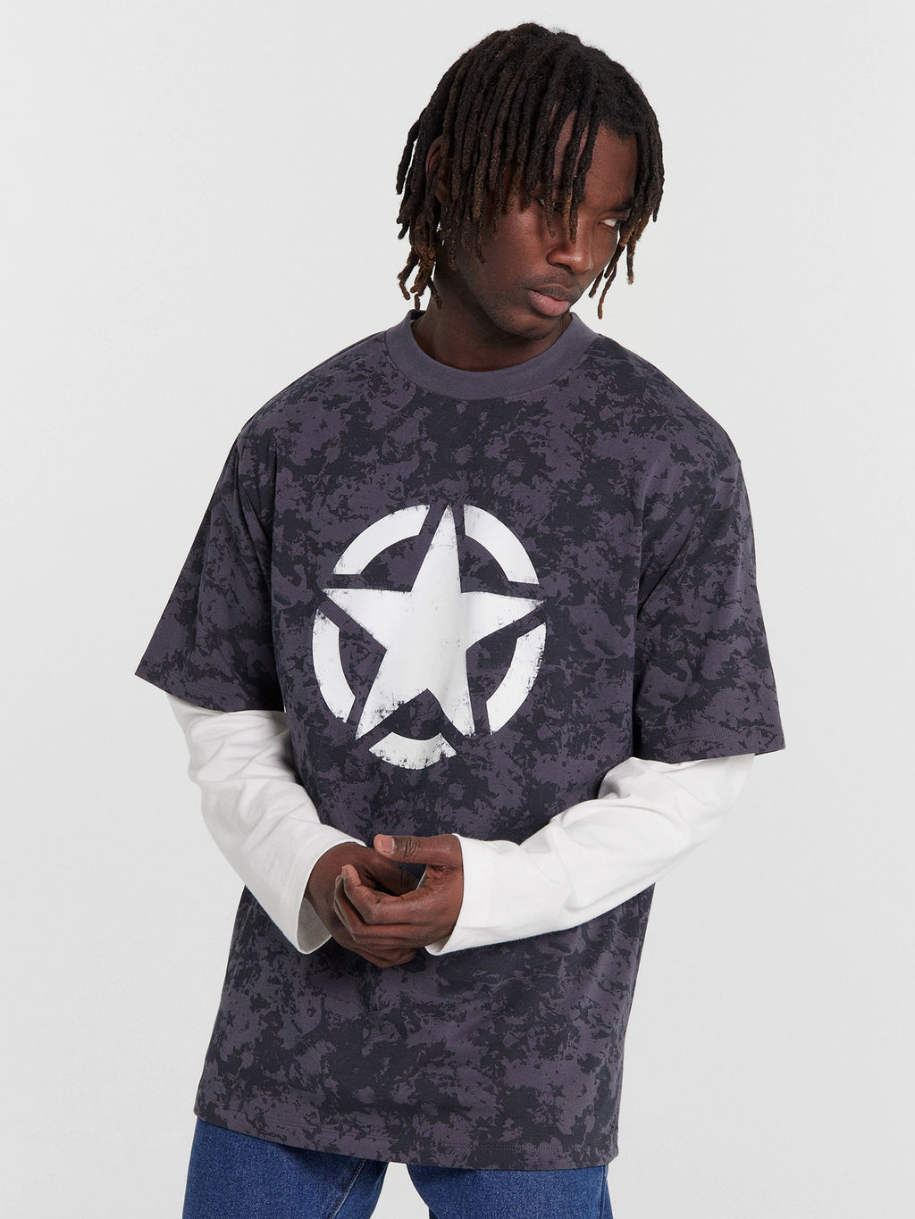 Футболка мужская серая в стиле милитари с принтом в виде звезды миллитари варка на стали1 111846