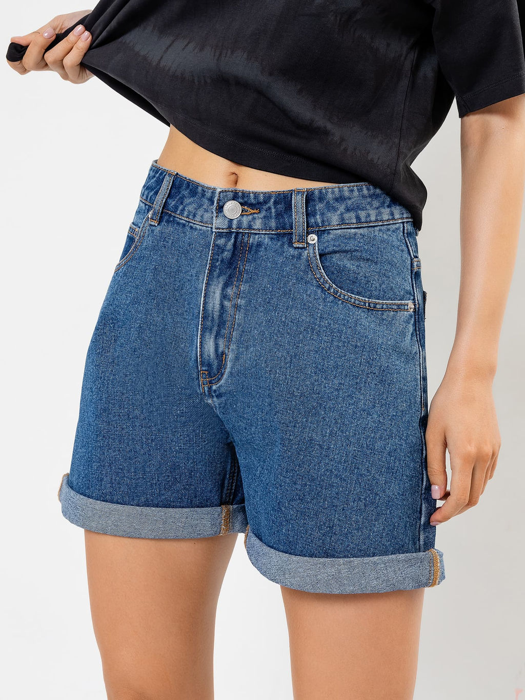 Шорты женские джинсовые мини в синем оттенке синий 2023-DS101-1