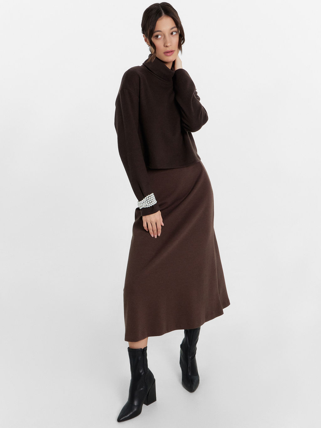Юбка женская миди Mark Formelle 152802 из хлопка с полиэстером пепельно-коричневый