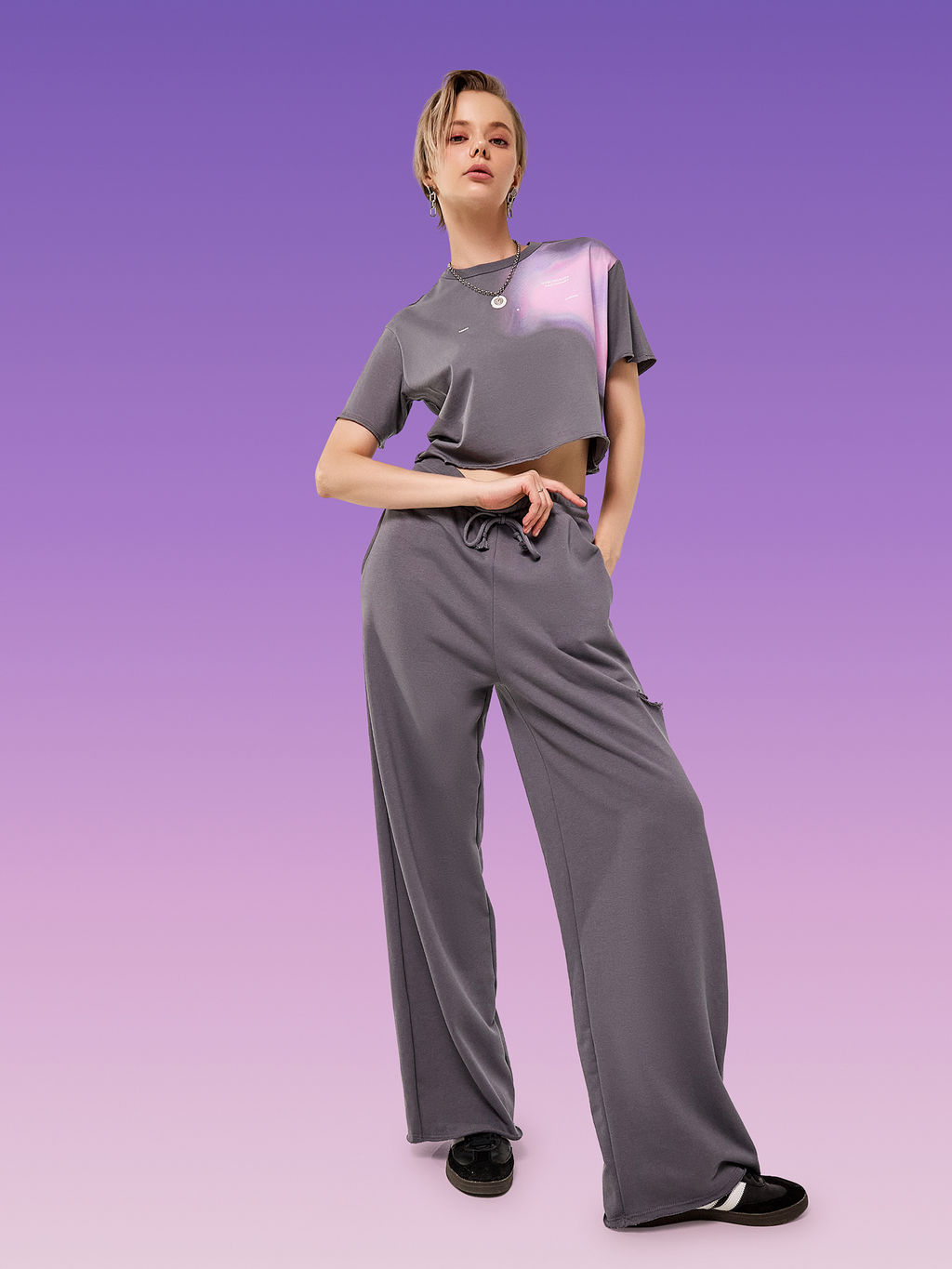 Комплект женский (футболка, брюки) серый с печатью сухой асфальт +печать 192542R