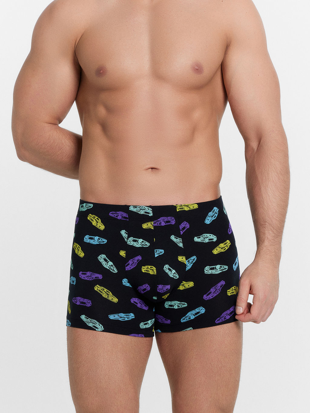 Цена за 2 штуки! Трусы мужские боксеры черные с принтом в виде машинок машинки на черном 411220
