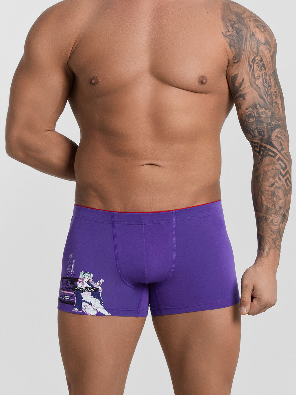 Цена за 2 штуки! Трусы боксеры мужские фиолетовые с принтом пурпурно -фиолетовый +печать 411134