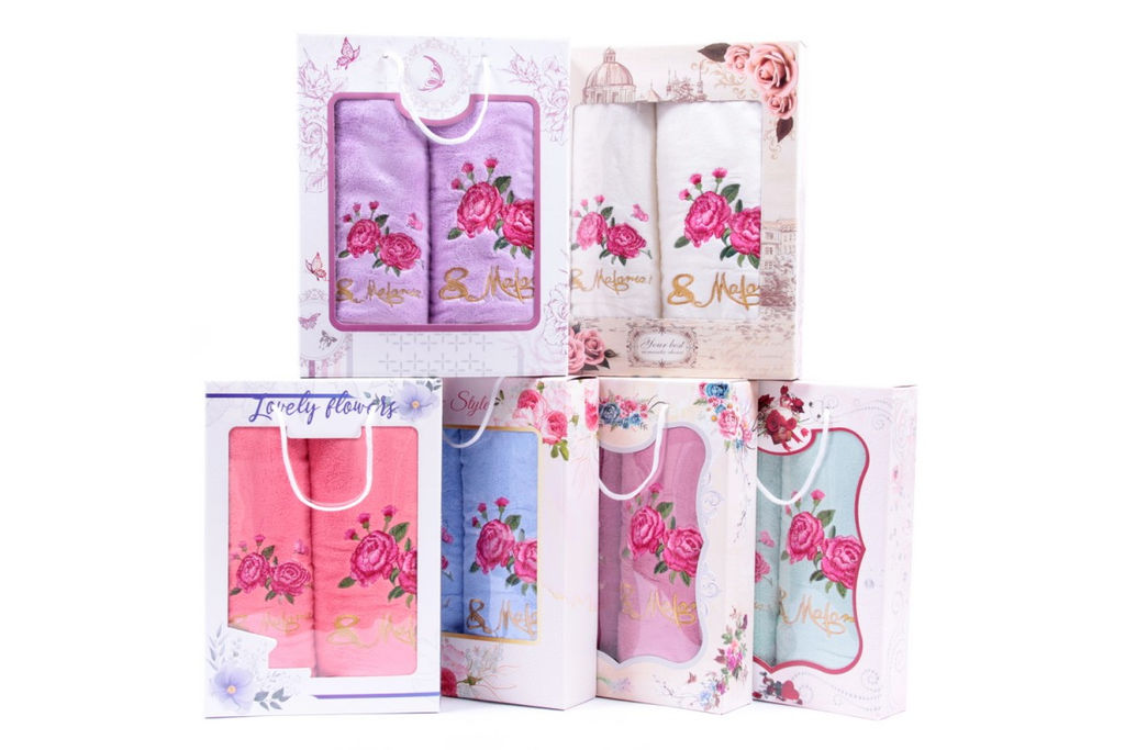 Набор полотенец микрофибра Букет роз на 8 Марта А-В-С-F-180 в коробке Б+Л