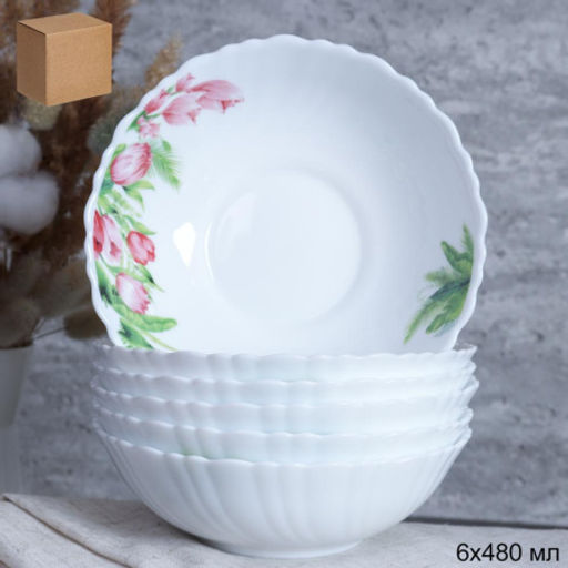 Набор суповых тарелок 6 штук 480 мл 155 мм / TW-60XN (7259) /уп 12/ Тюльпаны