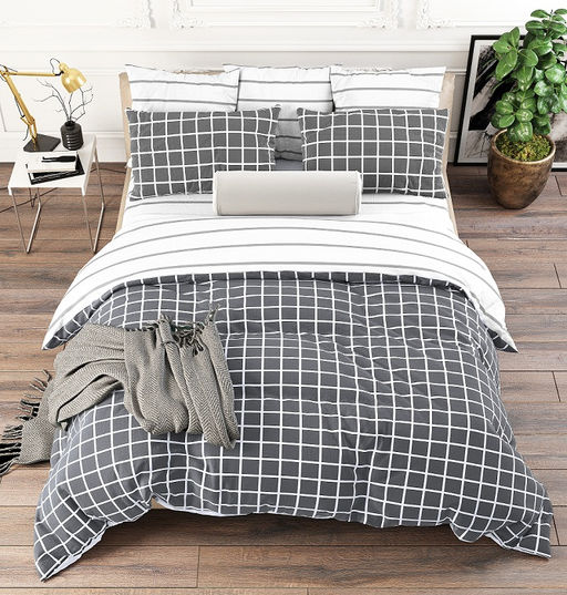 Артикул: Клетка Серая Постельное белье из Поплина Семейный