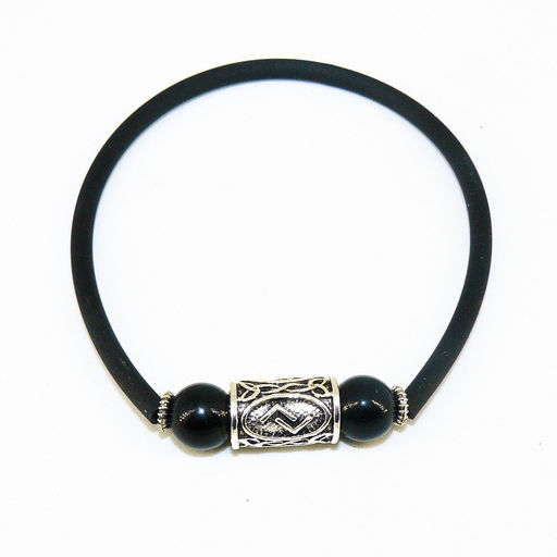 Рунический браслет с агатом чёрным на шнуре из каучука 17-19 см