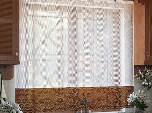 м444А ЗАНАВЕСКА белый с коричневый 1.45 м*2.75 м