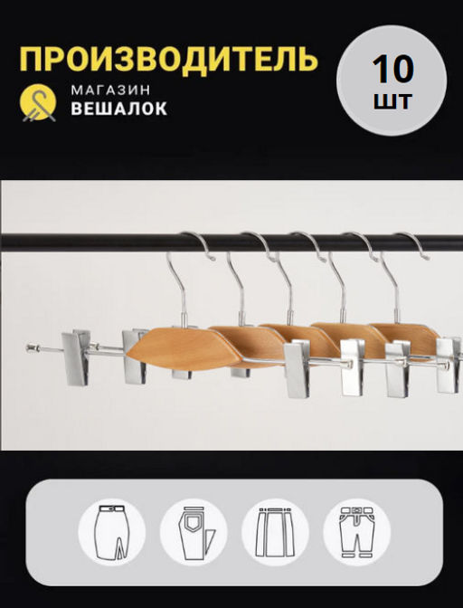 Вешалка для одежды деревянная с прищепками 36V 10 шт
