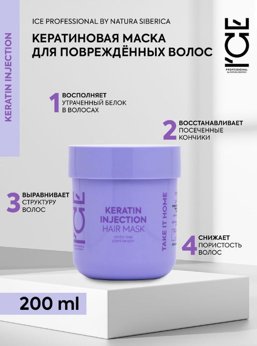 Кератиновая маска для повреждённых волос, 200 мл / Natura Siberica / ICE Professional / Home / Keratin Injection /