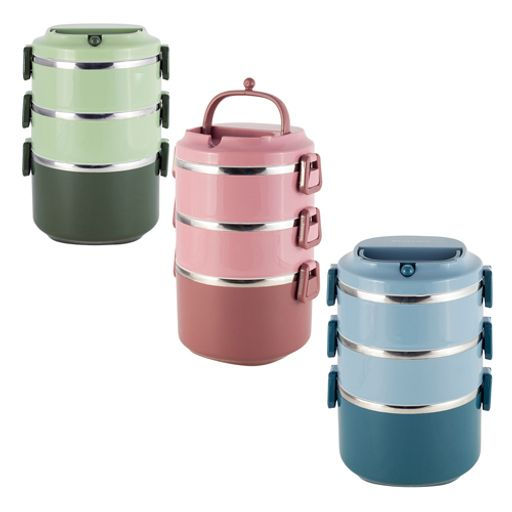 Ланч бокс тройной 2400мл (пластиковый корпус, внутренние емкости из нержавеющей стали;), (2137)
