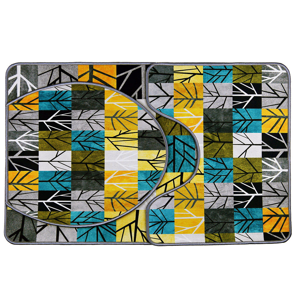 "Лес" Комплект ковриков для ванной и туалета 50х80см; 50х40см + коврик для унитазной крышки 44х40см, безворсовый, антискользящее основание, оверложенный край, полиэстер (Китай)