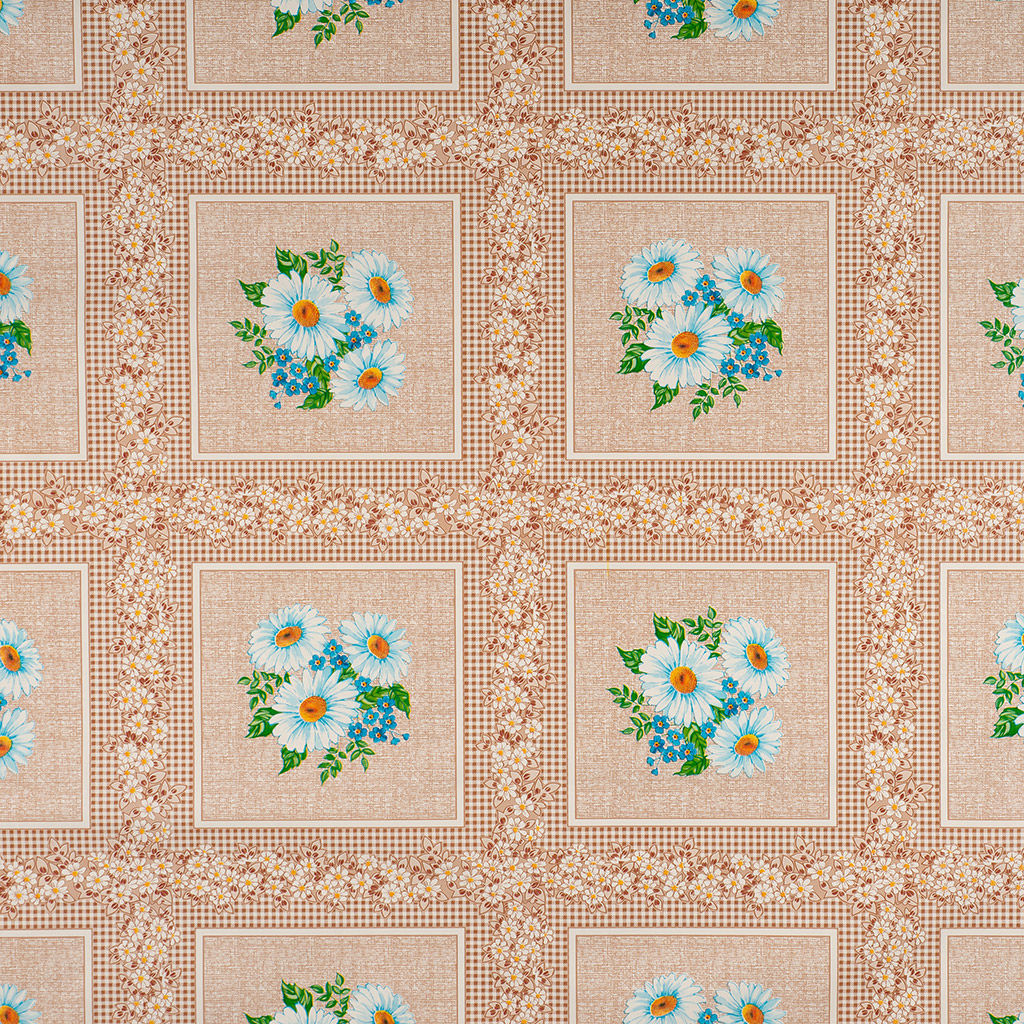 Клеенка столовая на тканевой основе 1,26х25м "Свадебная ромашка", ПВХ, в рулоне, Россия (цена за м/п)