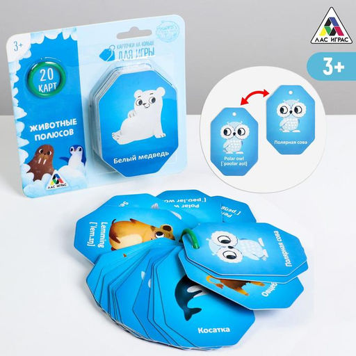 Карточки на кольце для изучения английского языка Животные полюсов, 3+