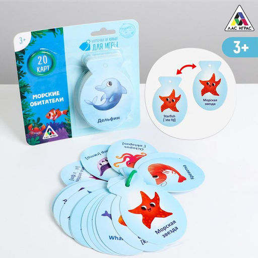 Карточки на кольце для изучения английского языка Морские обитатели, 3+