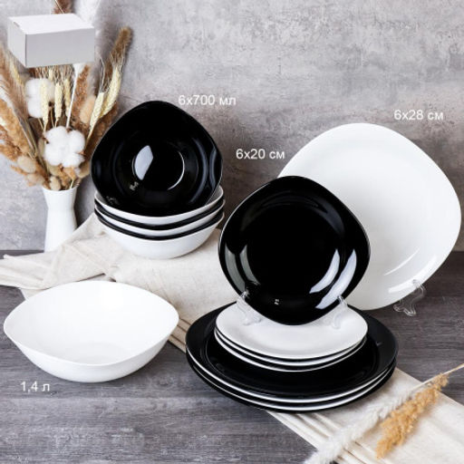 Столовый набор 19 предметов квадратный Черно-белый / NF19GT-11080759 (BLACK&WHITE) /уп 2/