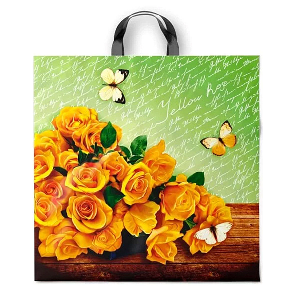 Цена за 25 шт. Пакет подарочный ПВД с петлевой ручкой 44х44см "Желтые розы", 70 мкм (Россия)