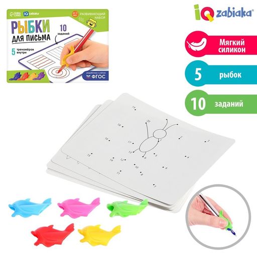 Развивающий набор Рыбки для письма, тренажёр для письма, ручка-самоучка, 5 шт., цвета МИКС