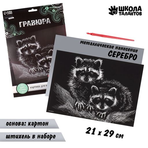 Гравюра Еноты с металлическим эффектом серебро А4