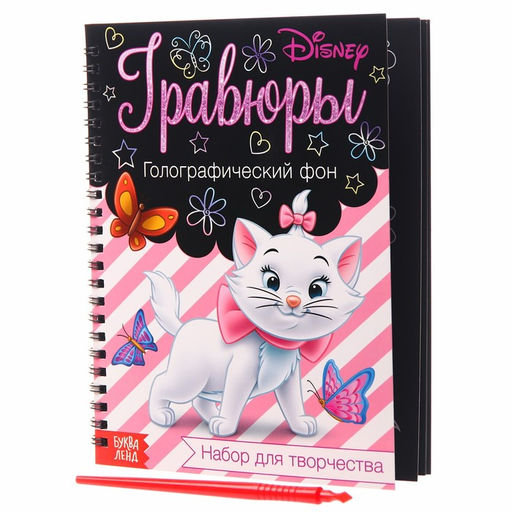 Набор для творчества Гравюры. Кошечка Мари, голографический фон, 8 гравюр, Дисней