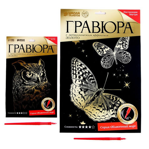 Набор гравюр Сова и бабочки