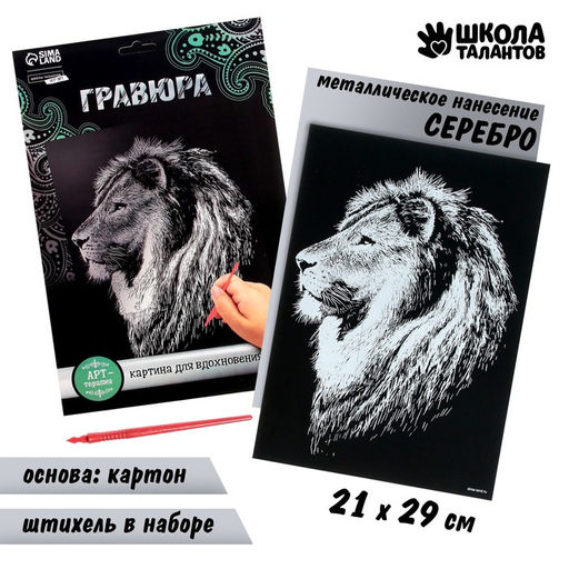 Гравюра Лев с металлическим эффектом серебро А4
