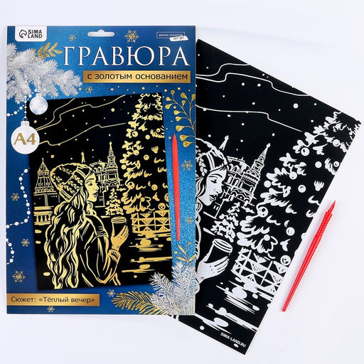 Гравюра Девушка с кофе, с эффектом золото, А4