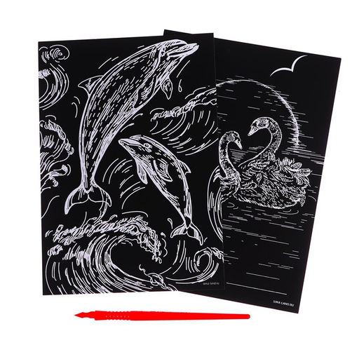 Набор гравюр Дельфин и лебеди с металлическим эффектом золото, 2 шт., А5