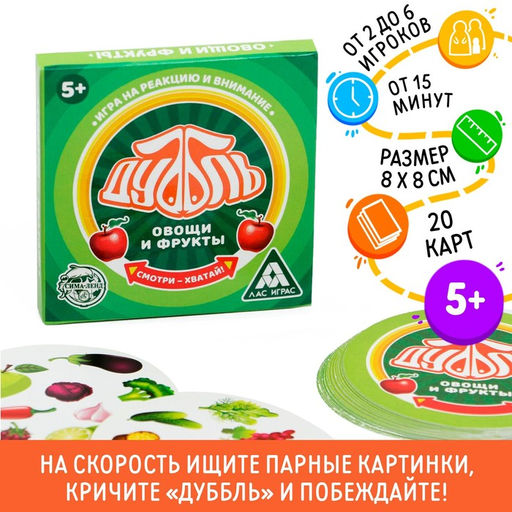 Настольная игра Дуббль. Овощи и фрукты на реакцию и внимание, 20 карт, 5+