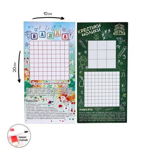 Настольная игра 2 в 1 "Балда", "Крестики-нолики" , стираемый маркер