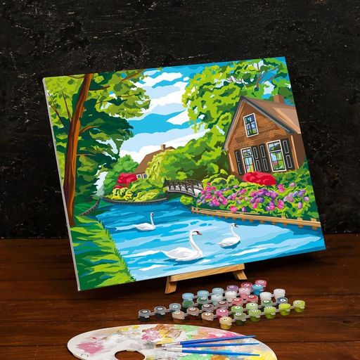Картина по номерам на холсте с подрамником Дом у реки 40 50 см