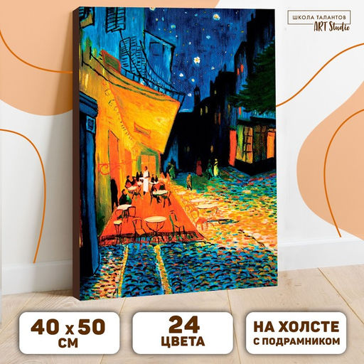 Картина по номерам на холсте с подрамником Ночная терраса кафе Винсент ван Гог 40 50 см
