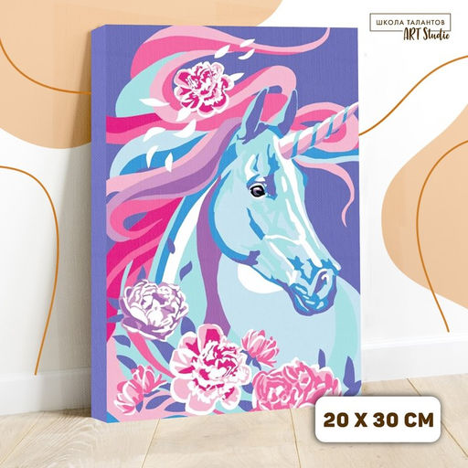 Картина по номерам на холсте с подрамником Единорог в цветах, 30х20 см
