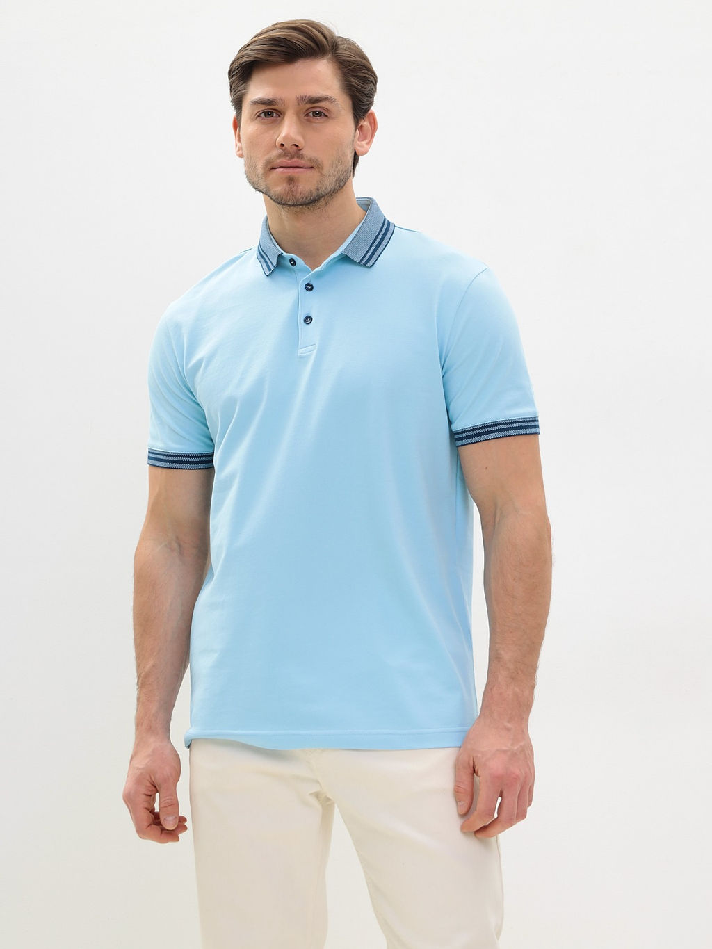 Джемпер мужской с воротником поло короткий рукав GREG G144V-PO34T-SA201 (голубой)