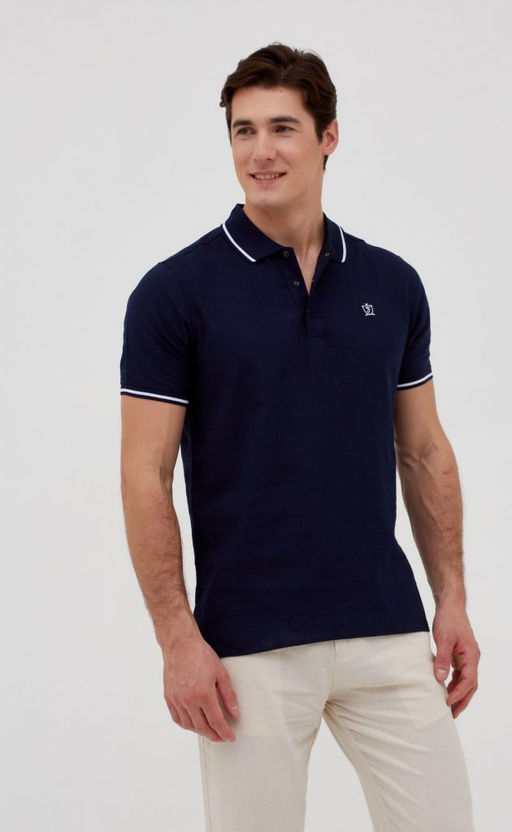 Футболка-поло льняная мужская F011-0770 тёмно-синяя