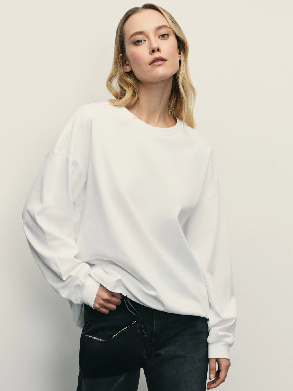 Лонгслив оверсайз с манжетами и принтом на рукаве / Zarina