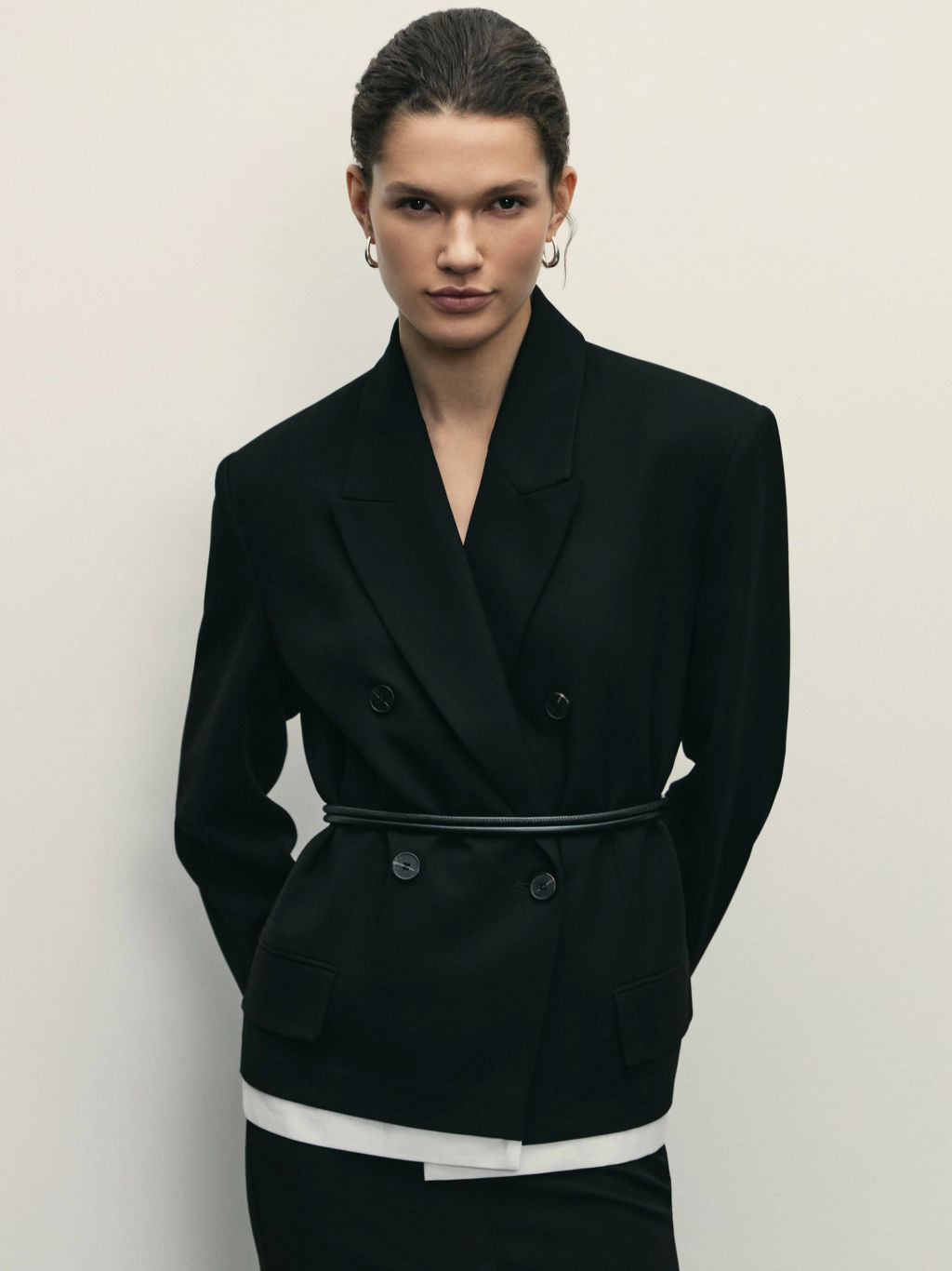 Двубортный жакет с контрастной деталью по низу / Zarina