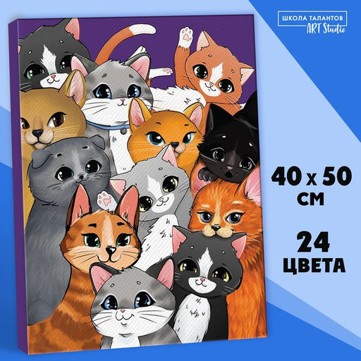 Картина по номерам на холсте с подрамником Множество котиков, 40 50 см