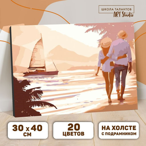 Картина по номерам на холсте с подрамником Прогулка по пляжу, 40х30 см