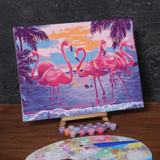 Картина по номерам на холсте с подрамником Фламинго на закате, 40х30 см