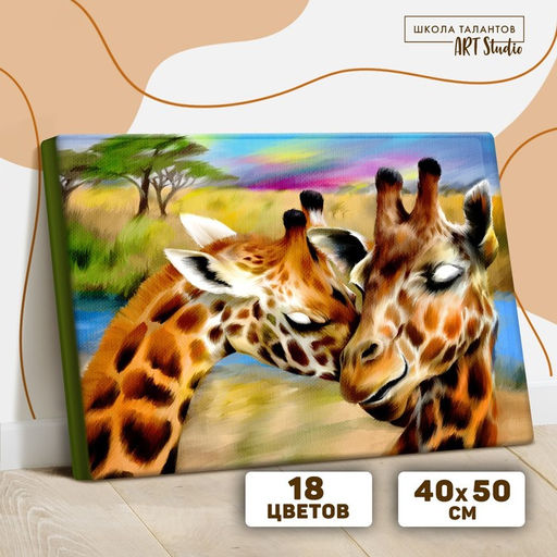 Картина по номерам на холсте с подрамником Жирафы. Нежность 40 50 см